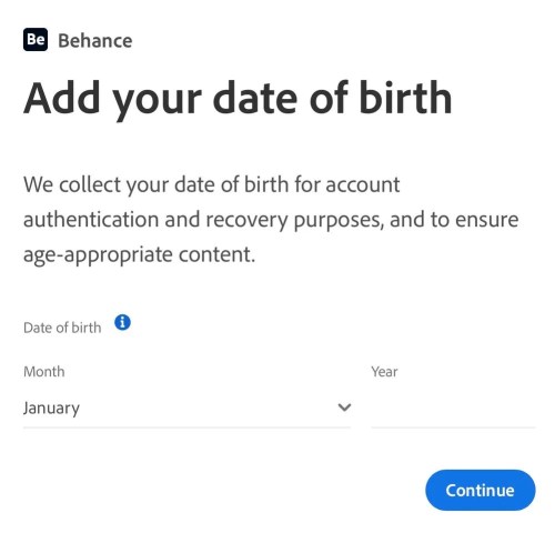 Bạn cũng có thể cần thêm ngày sinh của mình trên Behance để có quyền truy cập vào tính năng này.