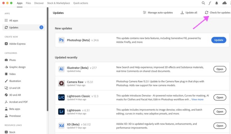 Cách 1: Cập nhật Adobe Photoshop (Beta)
