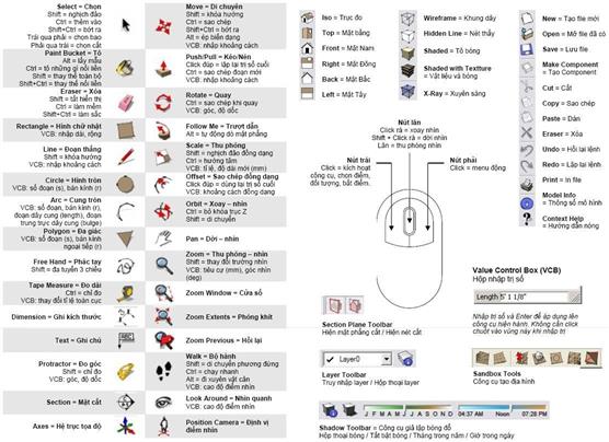 Bảng lệnh tắt bổ sung cho công cụ trong Sketchup 2019: