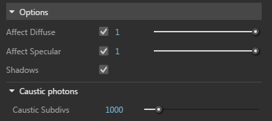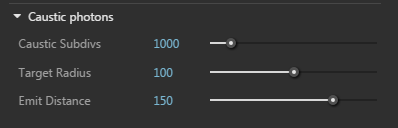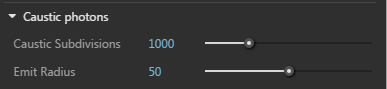 - Caustic Subdivs: Giá trị thấp hơn cho kết quả noise nhưng sẽ nhanh hơn . Giá trị cao hơn mang lại kết quả mượt mà hơn nhưng mất nhiều thời gian.