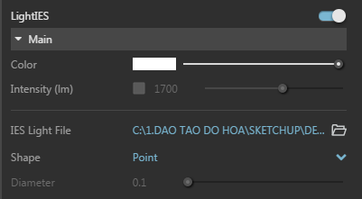 - IES Light File : đường dẫn đến file đèn có đuôi .IES