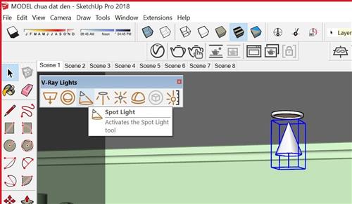 3. Cách sử dụng đèn Spot Light trong vray for sketchup: