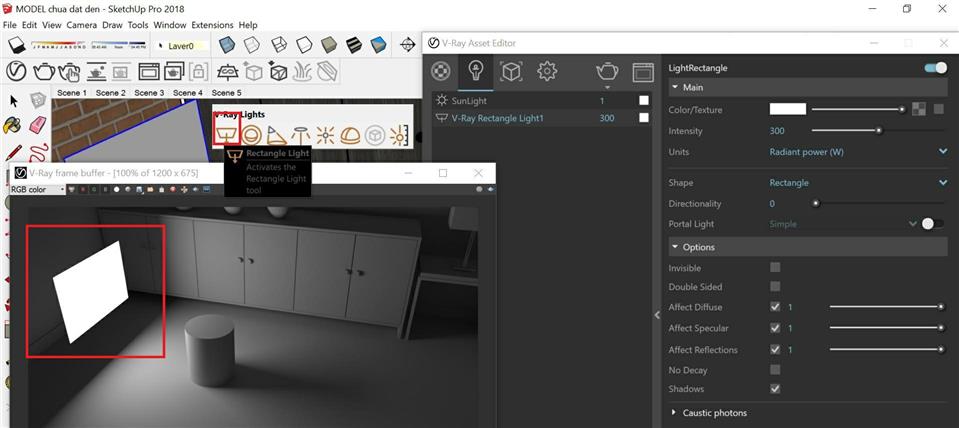 2. Cách sử dụng đèn Rectangle Light trong vray for sketchup:
