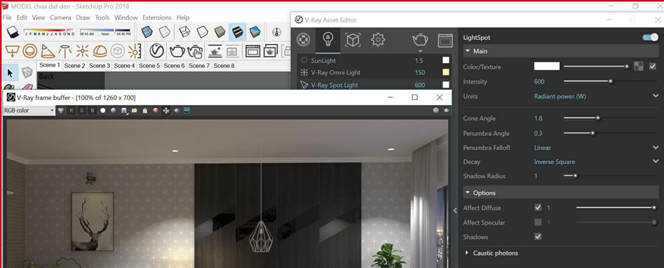 Hướng dẫn sử dụng đèn trong vray 3.6 for sketchup