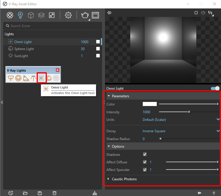1. Cách sử dụng đèn Omni Light trong vray 3.6 for sketchup