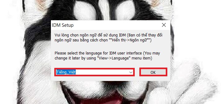 Bước 4: Bạn chọn Ngôn Ngữ để sử dụng, sau đó bạn chọn OK để tiếp tục.