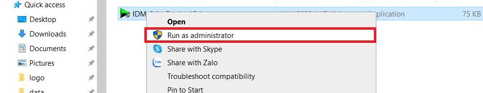 Bước 3: Bạn nhấp chuột phải vào idm chọn Run as administrator.